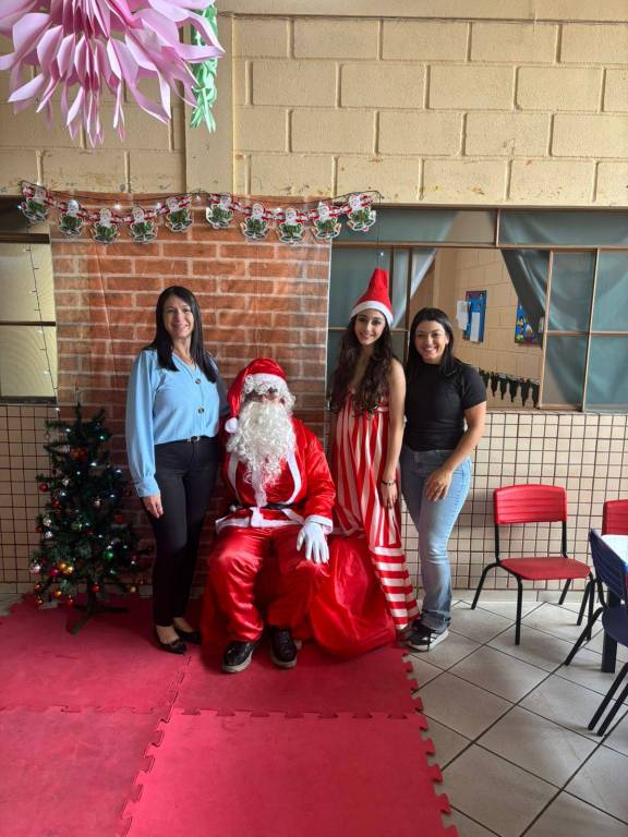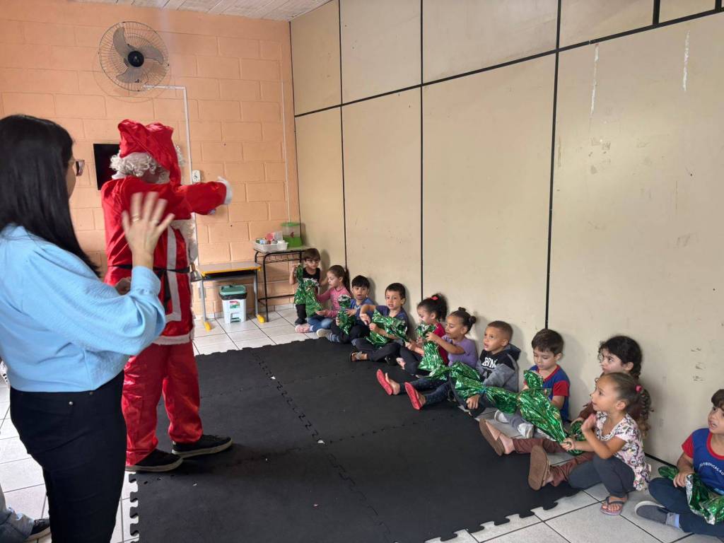 Manuela foi a primeira a chegar, acolheu os pequenos e anunciou que havia levado um convidado especial. A entrada do Papai Noel emocionou as crianças e tornou o momento ainda mais festivo.